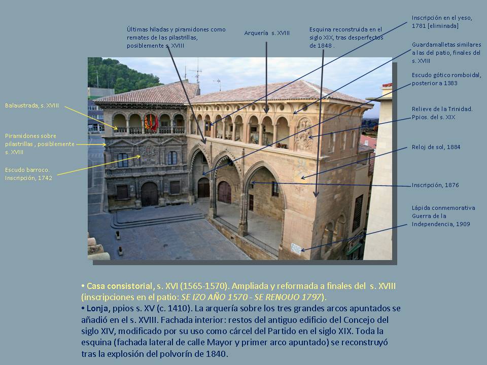 En ese apartado de esta ficha se puede descargar un estudio histórico-artístico del conjunto, realizado en 2020, cuando se restauraron sus fachadas. En el mismo apartado de la ficha de la lonja se incluye un estudio histórico-documental de este mismo conjunto realizado por Mar Aznar en 2021.
