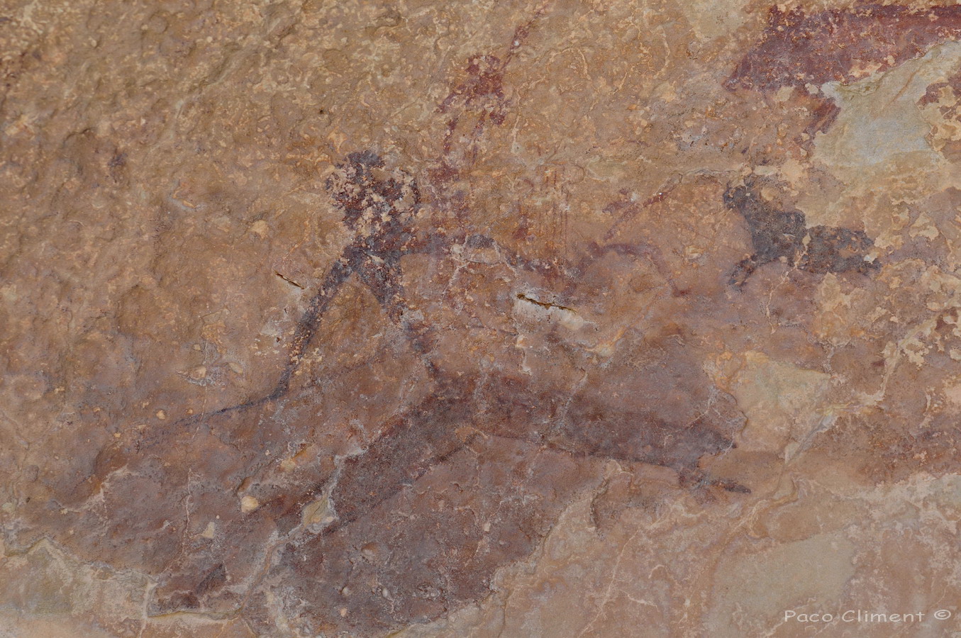 El conjunto pictórico -desarrollado como un gran friso- presenta más de 80 figuras, todas ellas en color rojo. En él tiene un gran protagonismo la figura humana dotada de un impresionante dinamismo. La vida que en él se refleja se centra en una única actividad: la caza. Tema que enlaza perfectamente con el valor ritual o propiciatorio que mayoritariamente se ha atribuido a estas remotas manifestaciones artísticas.