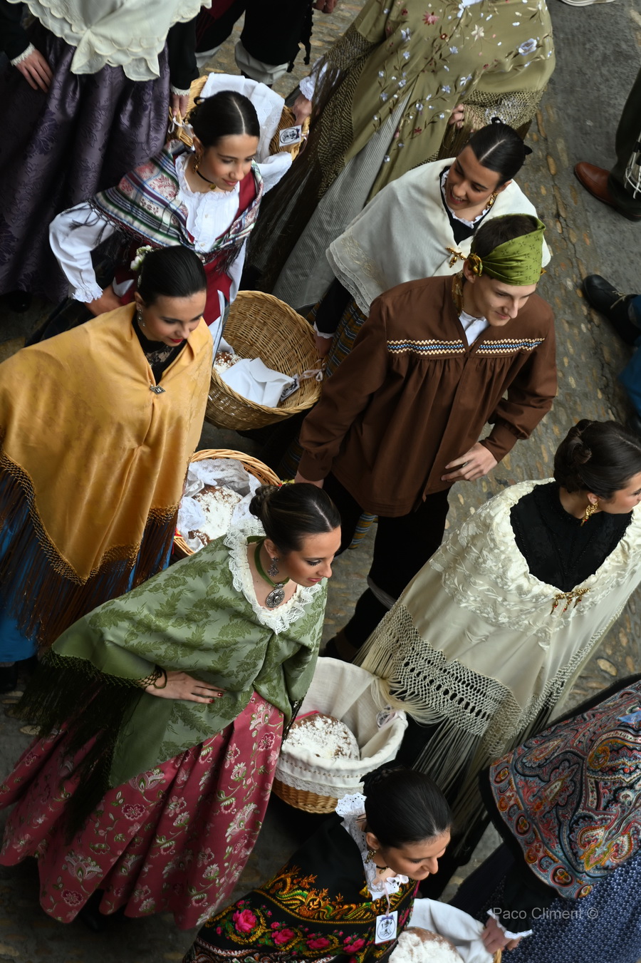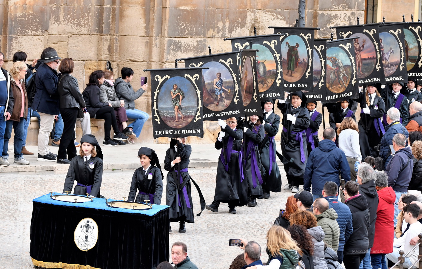 Sale la bandera, las ‘banderetas’, la Burreta, la Oración del Huerto. Llegan baturros y baturras con canastas o cestas donde se distinguen, entre los mimbres enrejados, las tortas de Pascua que serán entregadas al finalizar la procesión y así sucesivamente todos los pasos y figuras del Santo Entierro, el Sepulcro y la Virgen.