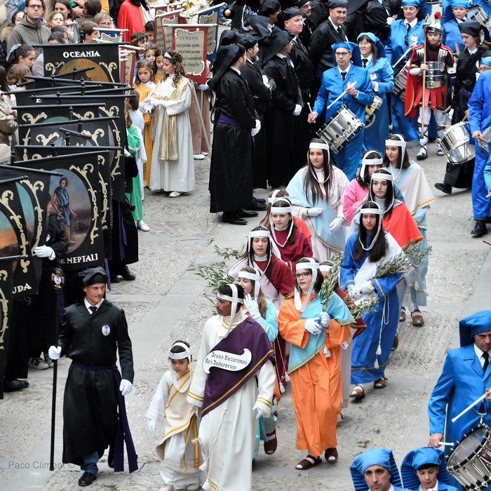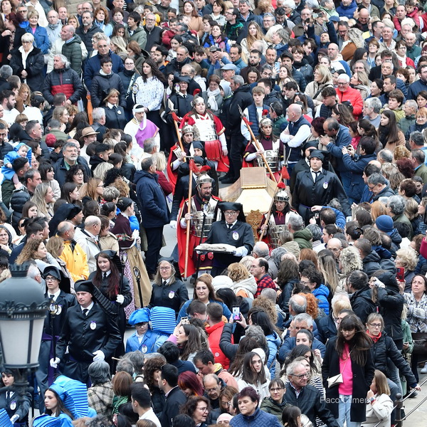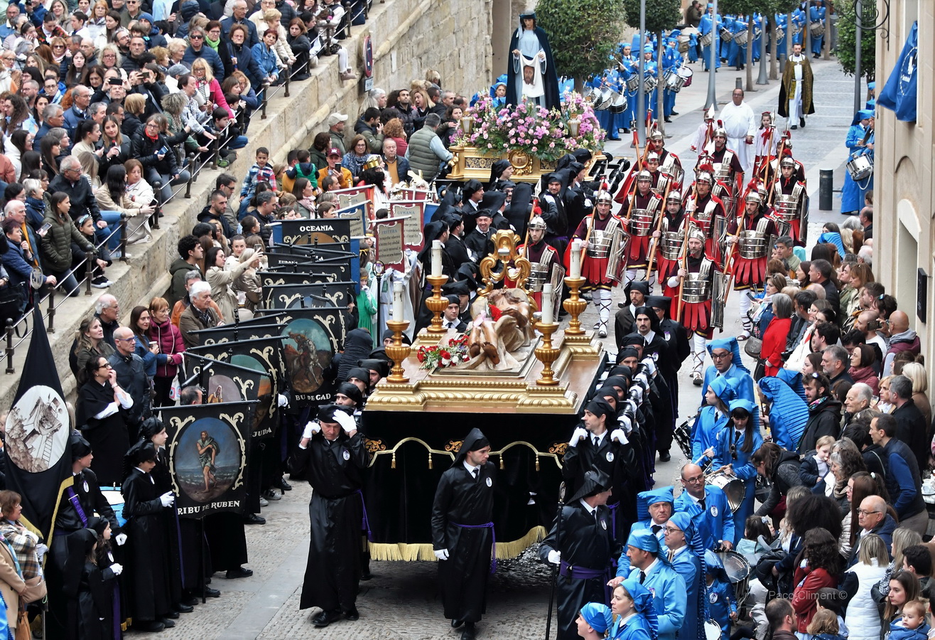 Como siempre, se inicia bajando por la calle Mayor y se va deprisa. El ritmo de los tambores acelera. El sonido del tambor imita a la vida. Nuestro corazón se mueve al ritmo de nuestros tambores que en dos filas se estiran y encogen al compás de la necesidad y singularidad de esas calles inigualables de la Ciudad y del Arrabal, Almudines, Muro Santa María, calle Mayor, Loreto, San Francisco, Carmen….