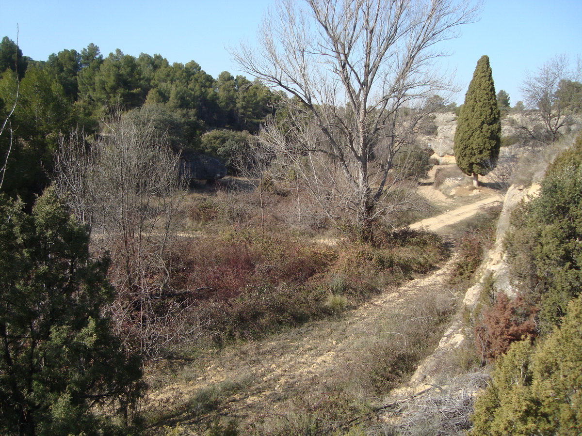 El denominado Barranc Fondo se extiende a lo largo de tres kilómetros, desde el Molí del siñó Juan Pío hasta su salida del término municipal en el antiguo Molí Siscar. Un estrecho corredor de vegetación de ribera queda encajado entre el mosaico agrícola – forestal por el que discurre su trazado. Los terrenos por los que discurre el río Mezquín en este tramo se corresponden con conglomerados y rocas areniscas, procedentes de la solidificación de arenas y cantos rodados depositados durante la Era Terciaria. Es un paisaje singular en el que la erosión de las aguas ha ido profundizando en estos materiales, conformando angostas gargantas, oquedades y calderas o pozas. En el entorno del cauce encontraremos numerosas cuevas utilizadas por los pastores y ganados, al abrigo de extensas cornisas de conglomerados en donde encontraban refugio.