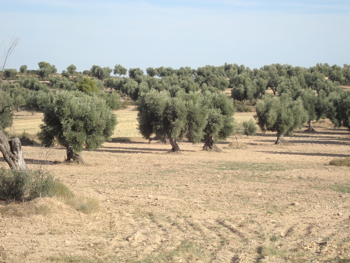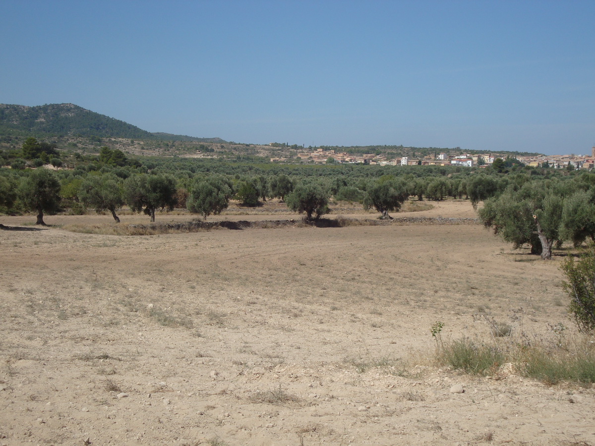 De forma circular en torno al casco urbano de Torrevelilla y ampliando su superficie hacia el vecino término de Castelserás, se extiende el paisaje agrario dominado por cultivos de secano, cereal, almendros y fundamentalmente olivar. Como en otras ocasiones, conforme nos vamos alejando de la localidad, encontramos entremezclados pequeñas superficies de monte bajo (romeros, enebros, coscojos…) y algún pino carrasco. La sierra de La Ginebrosa y en este caso concreto la Val de Largo en su parte oeste y el río Mezquín por el oeste, delimitan con claridad este espacio agrario.