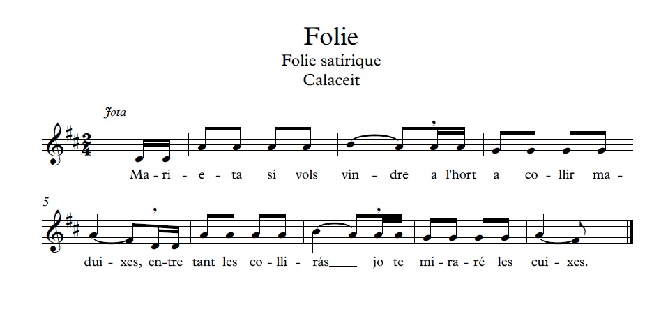 Borau, Lluís i Sancho, Carles (coord.), Lo Molinar. Literatura popular catalana del Matarranya i Mequinensa, 2. Cançoner, Teruel, IET-ACM-Carrutxa, 1996, p. 164.