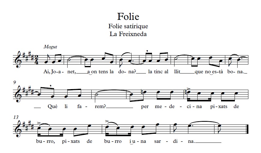 BORAU, Lluís i SANCHO, Carles (coord.), Lo Molinar. Literatura popular catalana del Matarranya i Mequinensa, 2. Cançoner, Teruel, IET-ACM-Carrutxa, 1996, p. 165.
